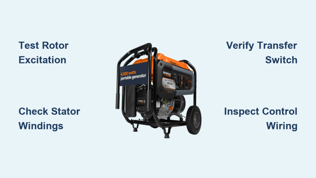 Your Generac generator fires right up during an outage but delivers zero electricity to your home. You hear the engine running normally, yet lights stay dark and appliances remain dead. This “ghost generator” scenario affects thousands of homeowners annually—leaving families stranded despite having invested in backup power. The critical detail? When your Generac generator not producing power while running smoothly, the fault almost always lies in the electrical generation system, not the engine. Most cases trace to one of three culprits: rotor excitation failures, stator winding damage, or control wiring errors. By following this systematic approach, you’ll pinpoint the exact failure point and avoid costly service calls.