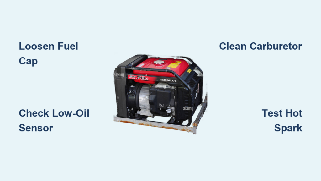 Before touching tools, perform this 60-second check. A clogged fuel cap vent creates vacuum lock that starves your engine—mimicking complex carburetor issues. With your Honda generator running, loosen the fuel cap one full turn as it begins to sputter. If the engine instantly smooths out and continues running, replace the $12 cap immediately. Never ignore this simple fix: forcing the generator to run with a sealed tank risks damaging the carburetor diaphragm or fuel pump. For EU2000 owners, inspect the vent hole (a pin-sized opening in the cap’s seal) with a needle—ethanol-blended fuel leaves invisible gummy deposits here.