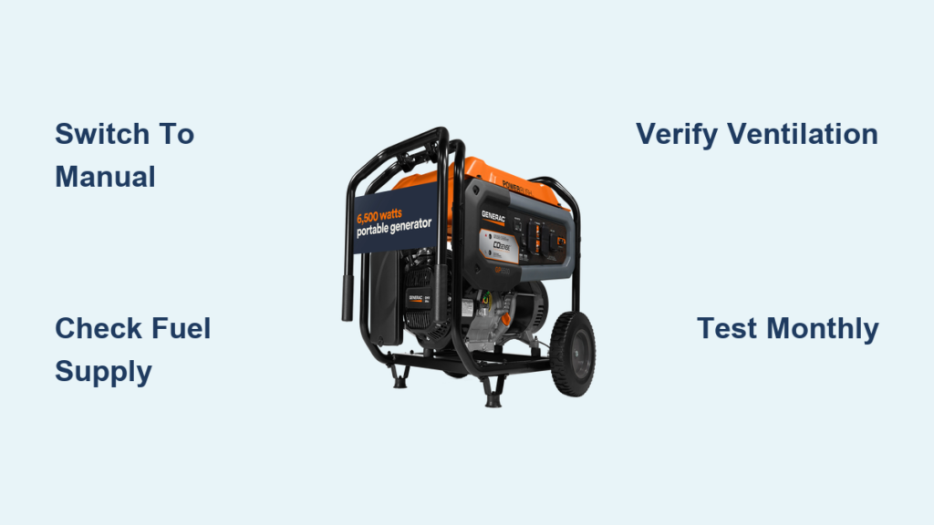 Important: If the generator doesn’t start on the first attempt, return the switch to OFF and wait at least 30 seconds before retrying. This prevents starter motor overheating—a critical safety consideration often overlooked during emergencies.