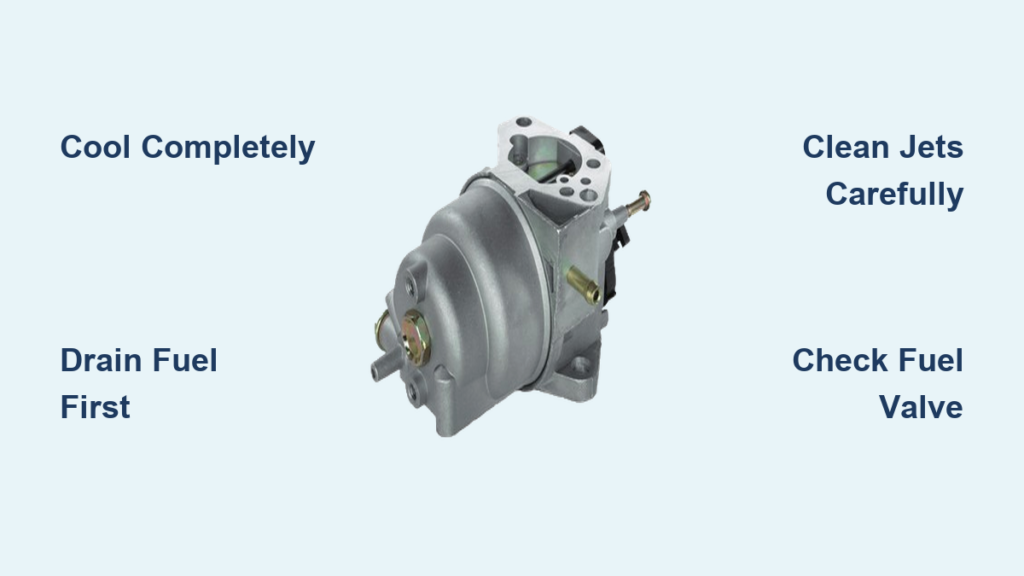 Place a container under the carburetor’s drain screw (typically on the bowl’s bottom). Unscrew counterclockwise until fuel flows freely—this takes 45-60 seconds. Old fuel contains ethanol residues that re-clog jets if left inside. Never skip this step even with “empty” tanks.