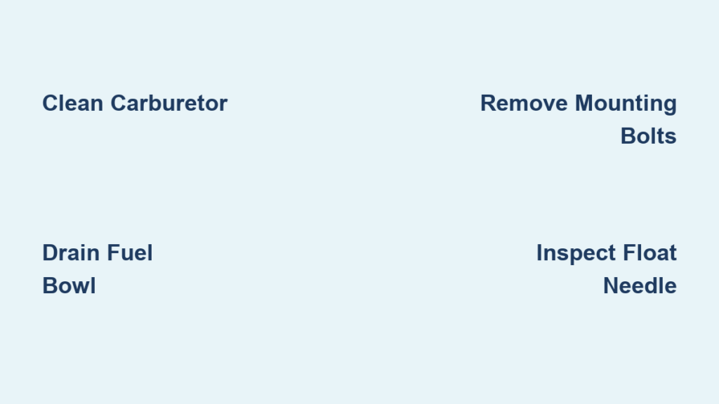 Spray carb cleaner into all visible ports for 10-second bursts. Focus on the two auxiliary ports near the throttle plate – these control idle speed. Use compressed air to blow debris backward through passages. Repeat until cleaner flows freely from all openings with no discoloration.